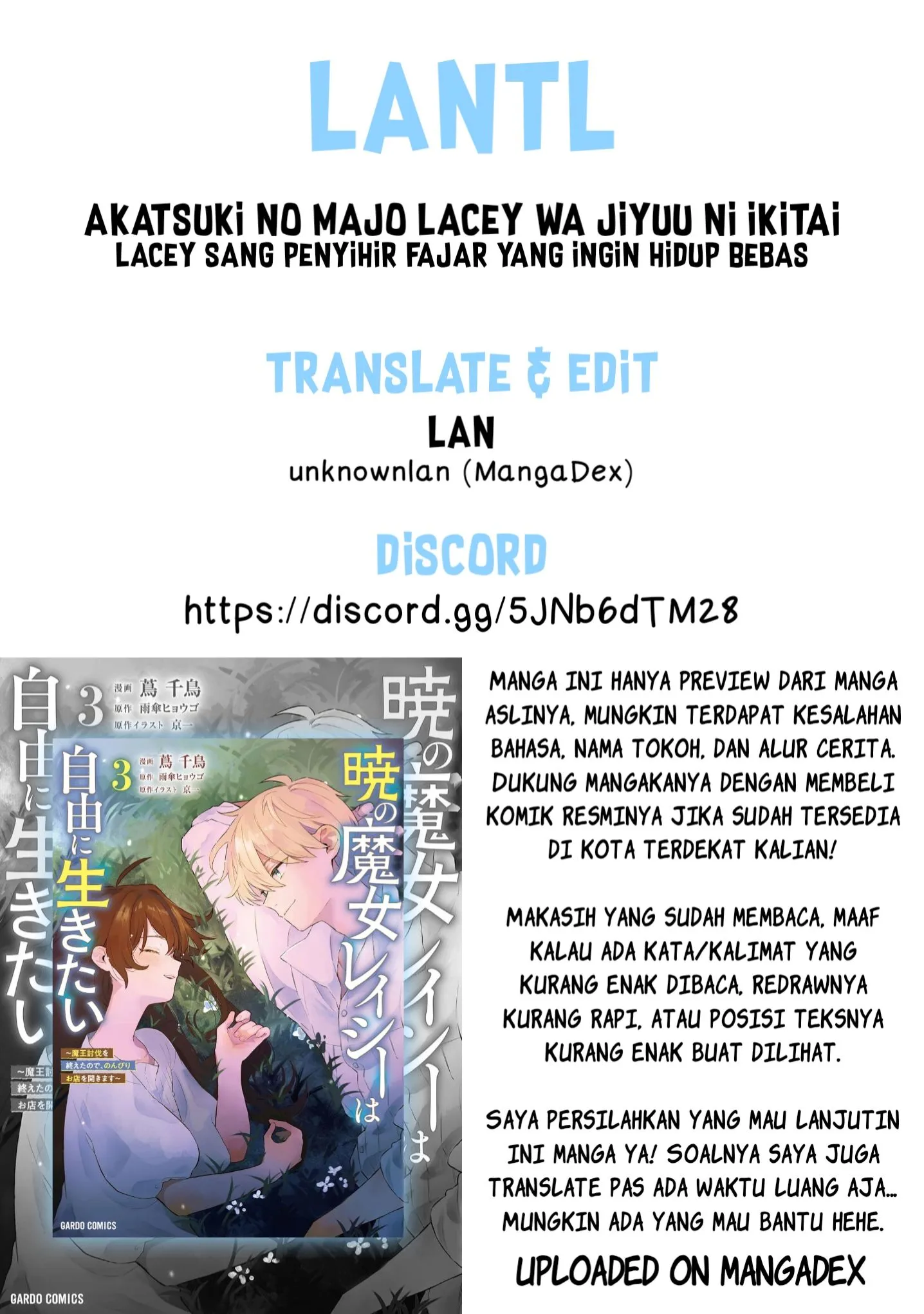 Akatsuki No Majo Reishi Wa Jiyu Ni Ikitai Mao Tobatsu o Oeta Node, Nonbiri O Mise O Hirakimasu